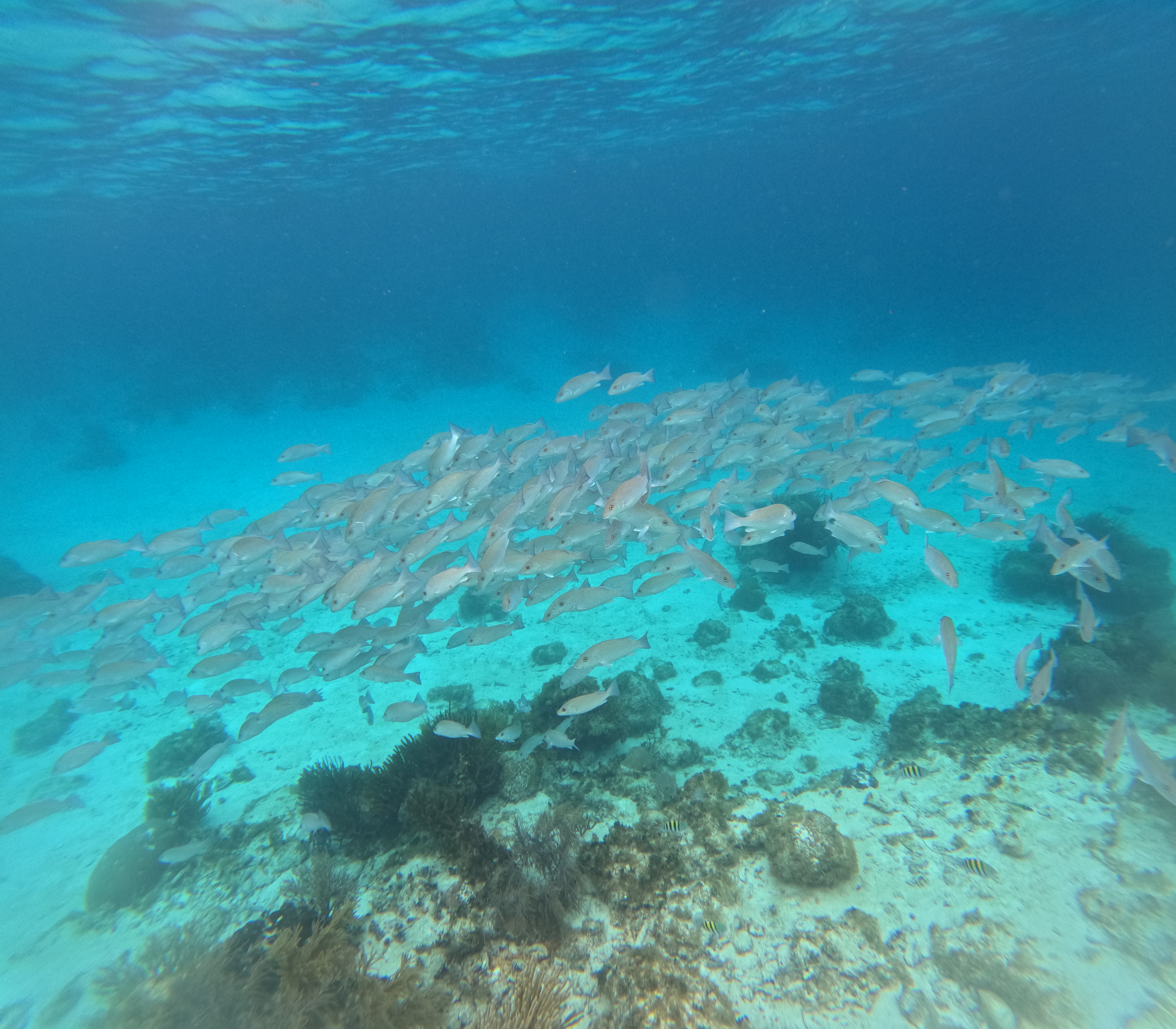 channel." Immerse yourself in the vibrant underwater world, teeming with schools of fish like snappers,